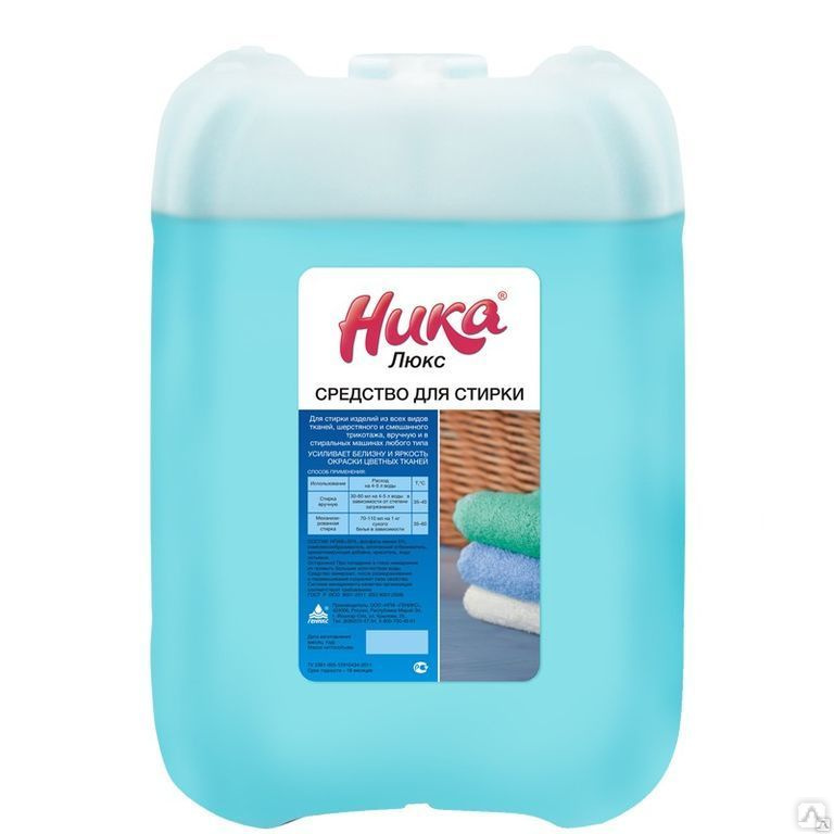 Жидкое средство для стирки Ника-Люкс (в быту такие средства называют жидкий порошок) предназначено для стирки изделий из всех видов тканей, шерстяного и смешанного трикотажа вручную и механизированным способом. Снимает пятна от кофе, чая, растительных масел. Усиливает белизну и яркость окраски цветных тканей.
